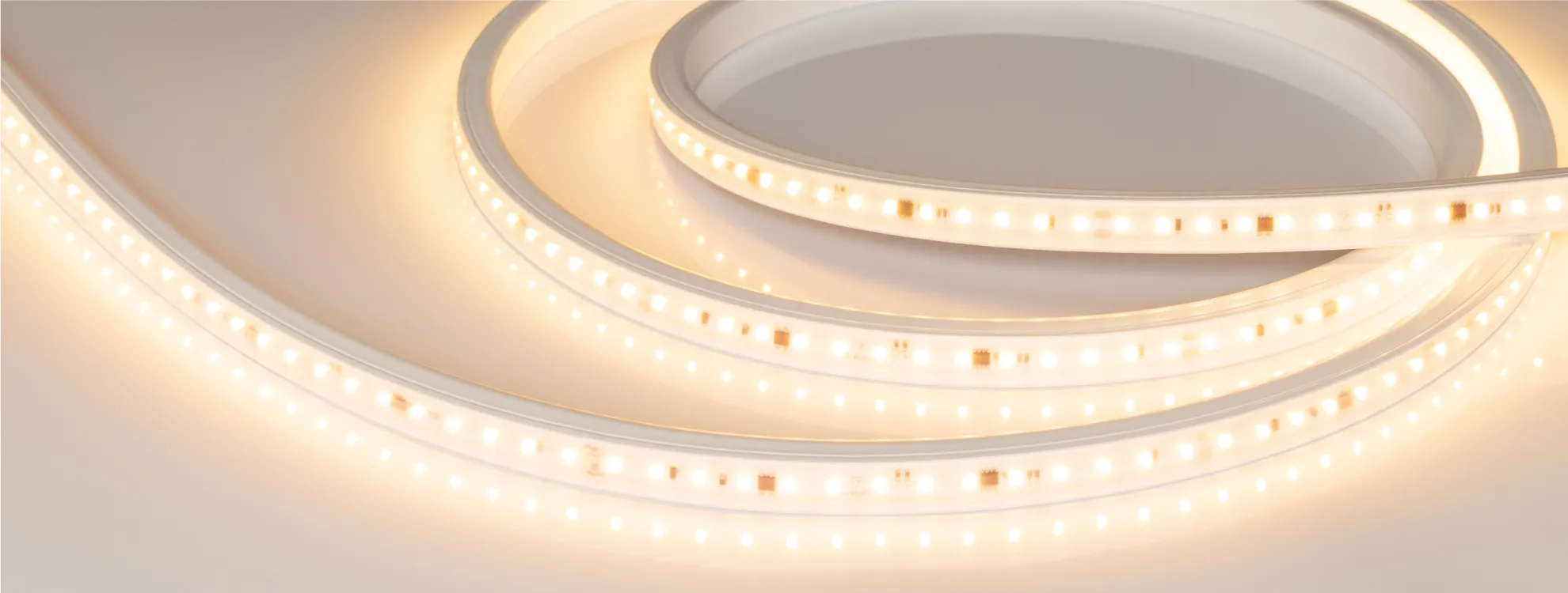 Комфорт Светодиодная лента обладает низким коэффициентом пульсаций <2% (FlickerFree). Это позволяет создавать комфортную для глаз декоративную подсветку.