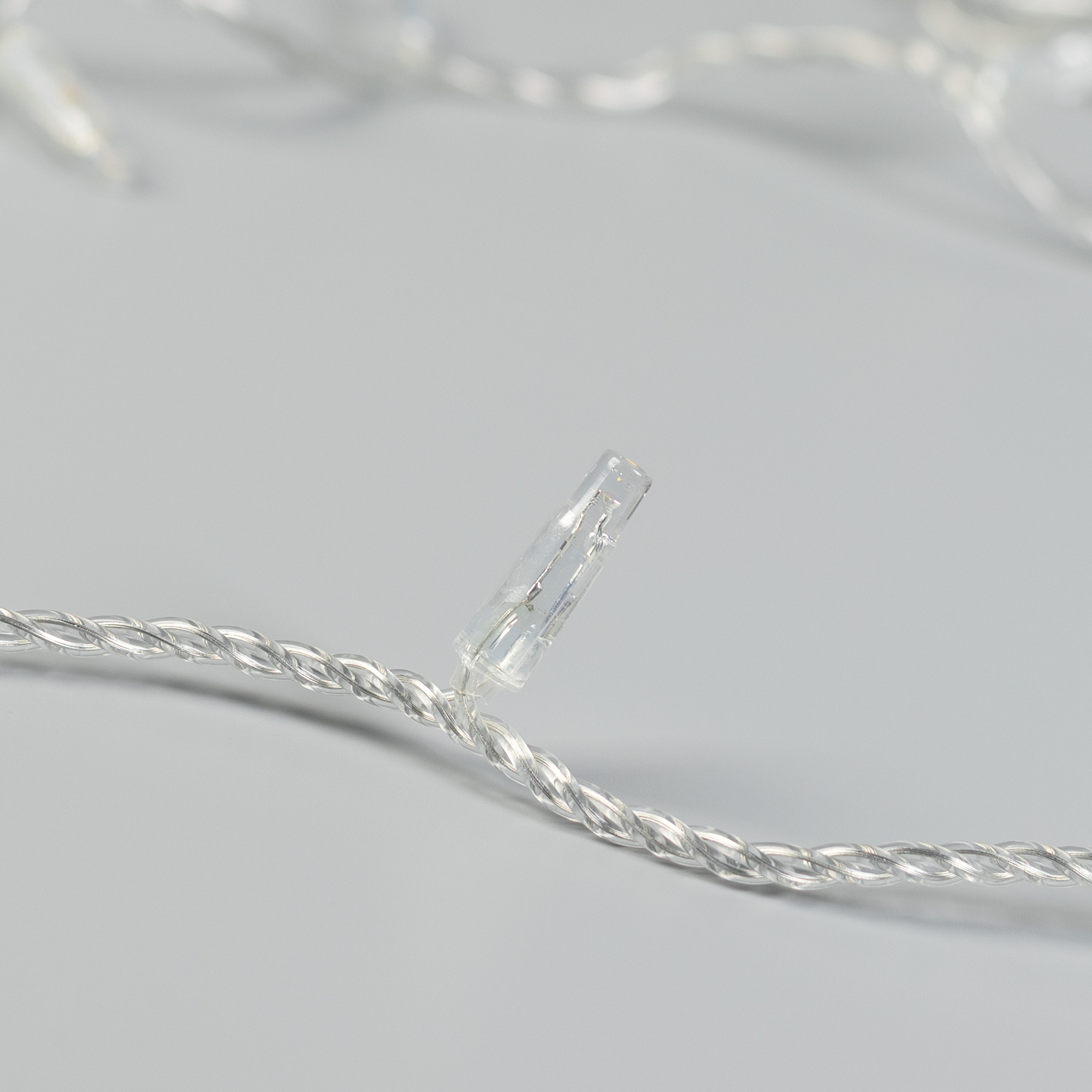 Универсальная светодиодная гирлянда "НИТЬ" серии Classic, предназначенная для декорирования и создания праздничного настроения как внутри помещений, так и снаружи (степень пылевлагозащиты IP65 позволяет размещать гирлянду на улице под навесом). Имея длину 10000 мм, она может использоваться для оформления средних и больших площадей. Универсальные соединительные разъемы позволяют наращивать длину до 50 м без использования дополнительных аксессуаров. Прозрачная вогнутая линза и эффект мерцания редких точек обеспечивают яркое и динамичное освещение, выделяя украшаемые объекты. Синий свет, в сочетании с холодным белым, помогает создать необходимую атмосферу для декоративного объекта. Прозрачный провод изготовлен из ПВХ. Аксессуар для подключения гирлянды к сети приобретается отдельно.