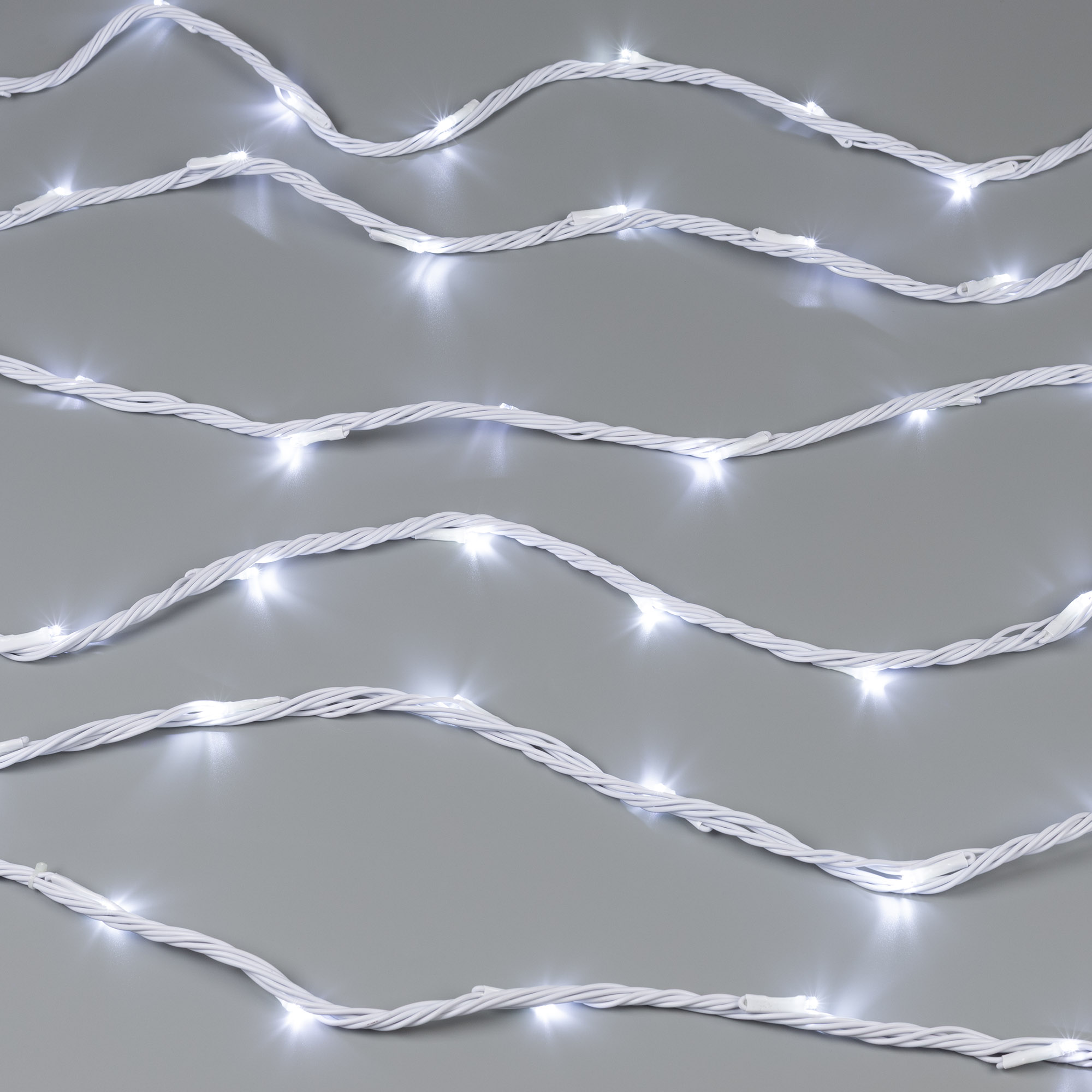 Универсальная светодиодная гирлянда "НИТЬ" серии Home, предназначенная для декорирования и создания праздничного настроения внутри помещений. Имея длину 10000 мм, она может использоваться для оформления средних и больших площадей. Универсальные соединительные разъемы позволяют наращивать длину до 50 м без использования дополнительных аксессуаров. Прозрачная вогнутая линза и эффект "Бегущий огонь" обеспечивают яркое, динамическое освещение, выделяя украшаемые объекты. Холодный белый свет помогает создать необходимую атмосферу для декоративного объекта. Провод изготовлен из ПВХ и окрашен в белый цвет. Аксессуары для подключения гирлянды к сети и управления уже в комплекте.