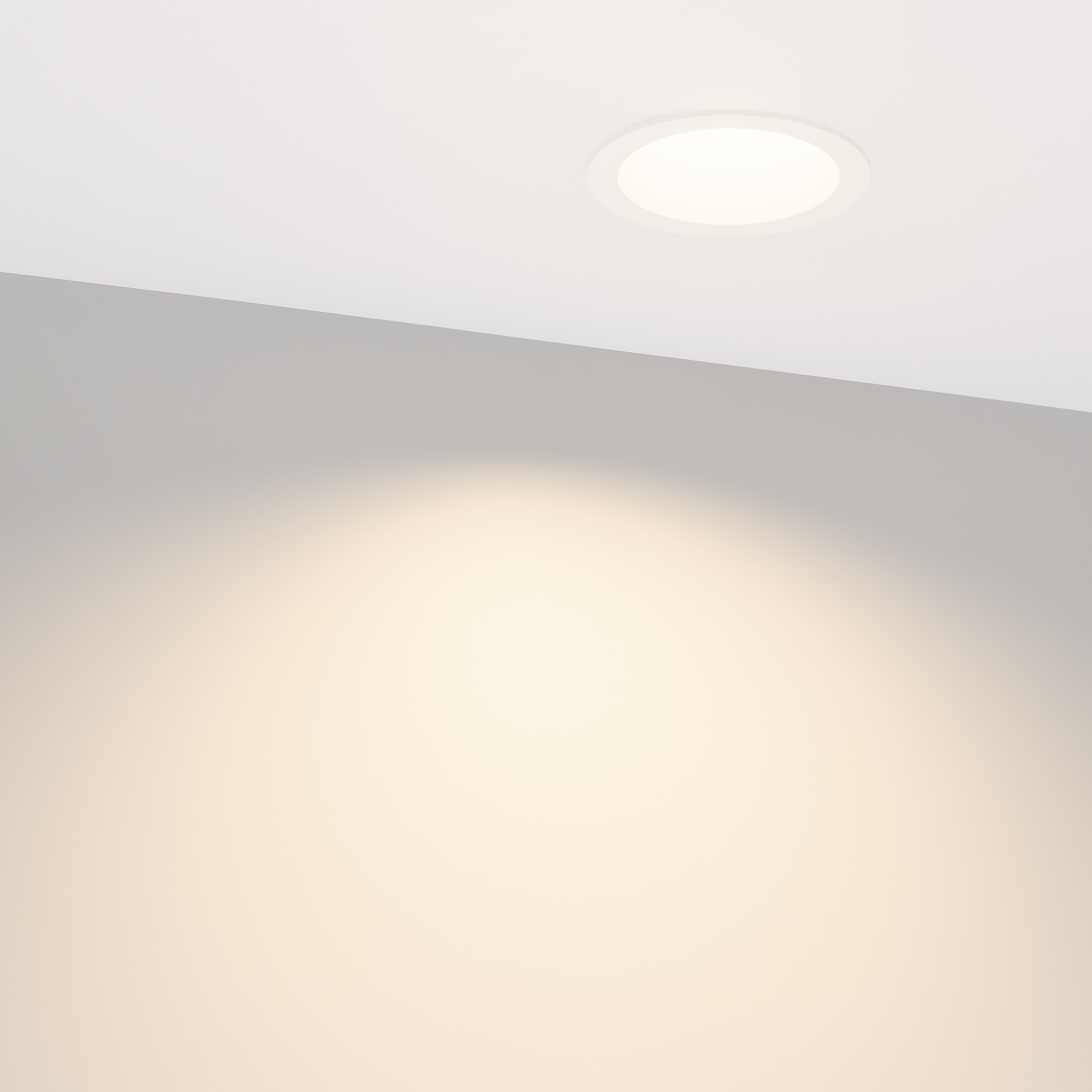 Встраиваемый круглый светильник с индексом CRI>90 обеспечивает точную передачу цветовых оттенков. Алюминиевый корпус белого цвета с утопленным светодиодным модулем является интересным дизайнерским решением, создавая эффект света из ниоткуда. Особая конфигурация корпуса позволяет эффективно отводить тепло и продлевает срок службы светодиодов, а также делает освещение равномерным, комфортным для глаз, без мерцания и видимости точек светодиодов. Светильник с широким углом излучения 85 градусов и эффективностью 90 лм/Вт обеспечивает качественное освещение с высокой светоотдачей. Легко устанавливается с помощью пружин в монтажное отверстие. Драйвер IP54, в комплекте позволяет быстро подключать светильник напрямую к сети переменного тока 230 В. Диммирование возможно при замене штатного драйвера. Защита корпуса на уровне IP54 позволяет устанавливать светильник в местах с повышенной влажностью. Предназначен для основного освещения в жилых, коммерческих, торговых помещениях.