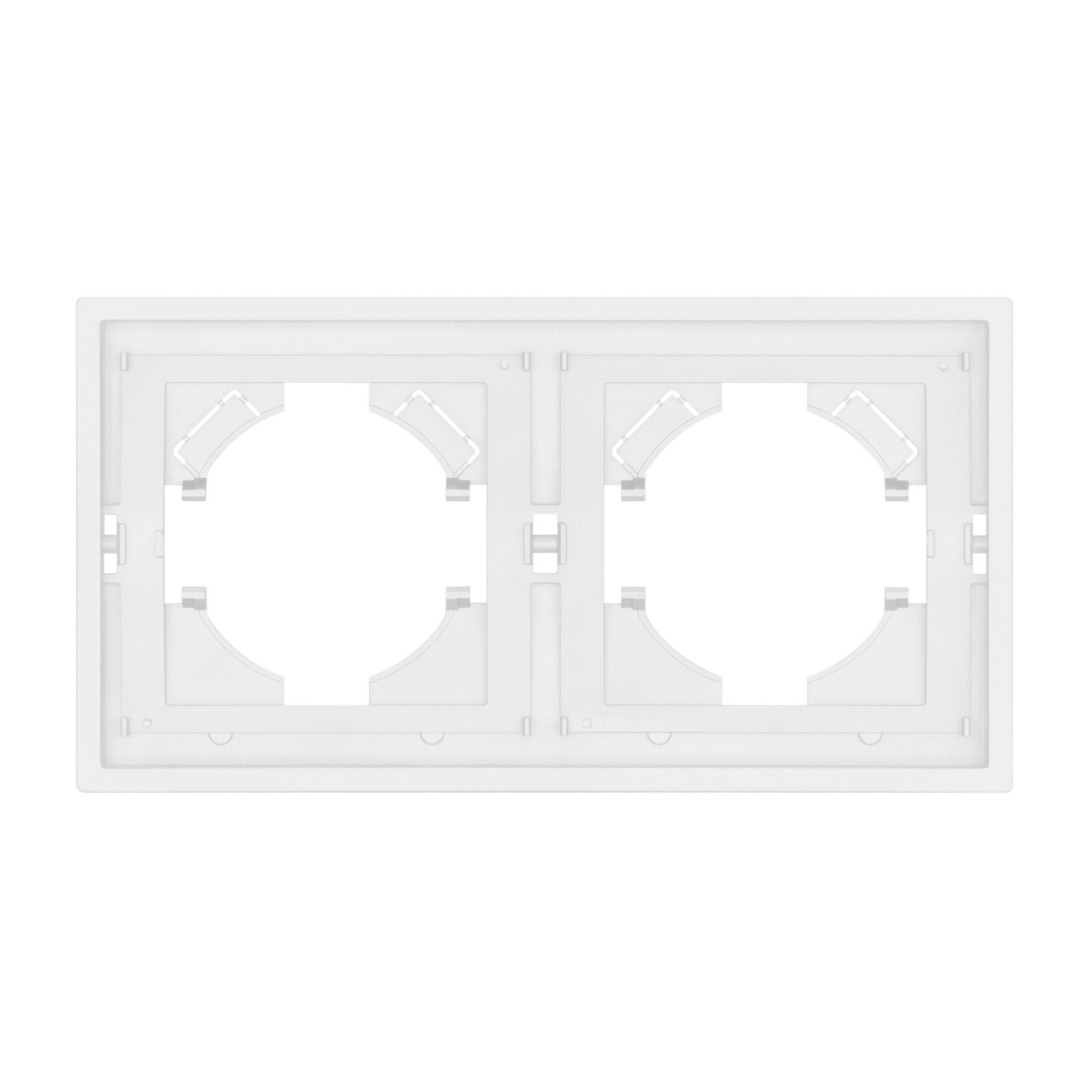 Рамка пластиковая на 2 поста, под встраиваемый механизм. Цвет - белый. Среднего уровня герметичности IP20. Ориентация монтажа горизонтальная. Габаритные размеры: длина 150 мм, ширина 80 мм, высота 9 мм. Гарантийный срок 12 мес.