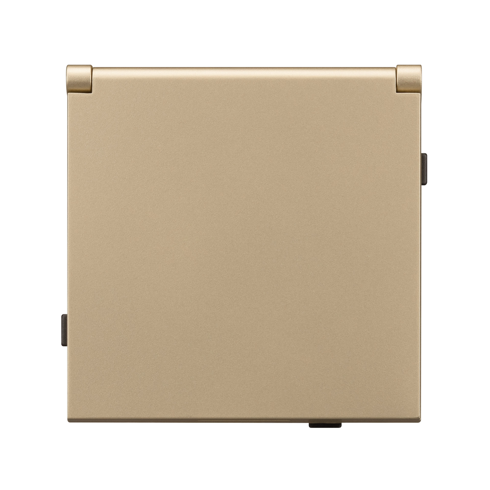 Механизм розетки с заземлением и влагозащитной крышкой на 1 пост. Цвет - золотой, с Soft-Touch покрытием. Без фронтальной рамки. Уровень пылевлагозащиты IP44. Розетка устанавливается в стандартный подрозетник круглого сечения диаметром 60мм. Габаритные размеры: длина 71 мм, ширина 71 мм, высота 52 мм. Гарантийный срок 10 лет.