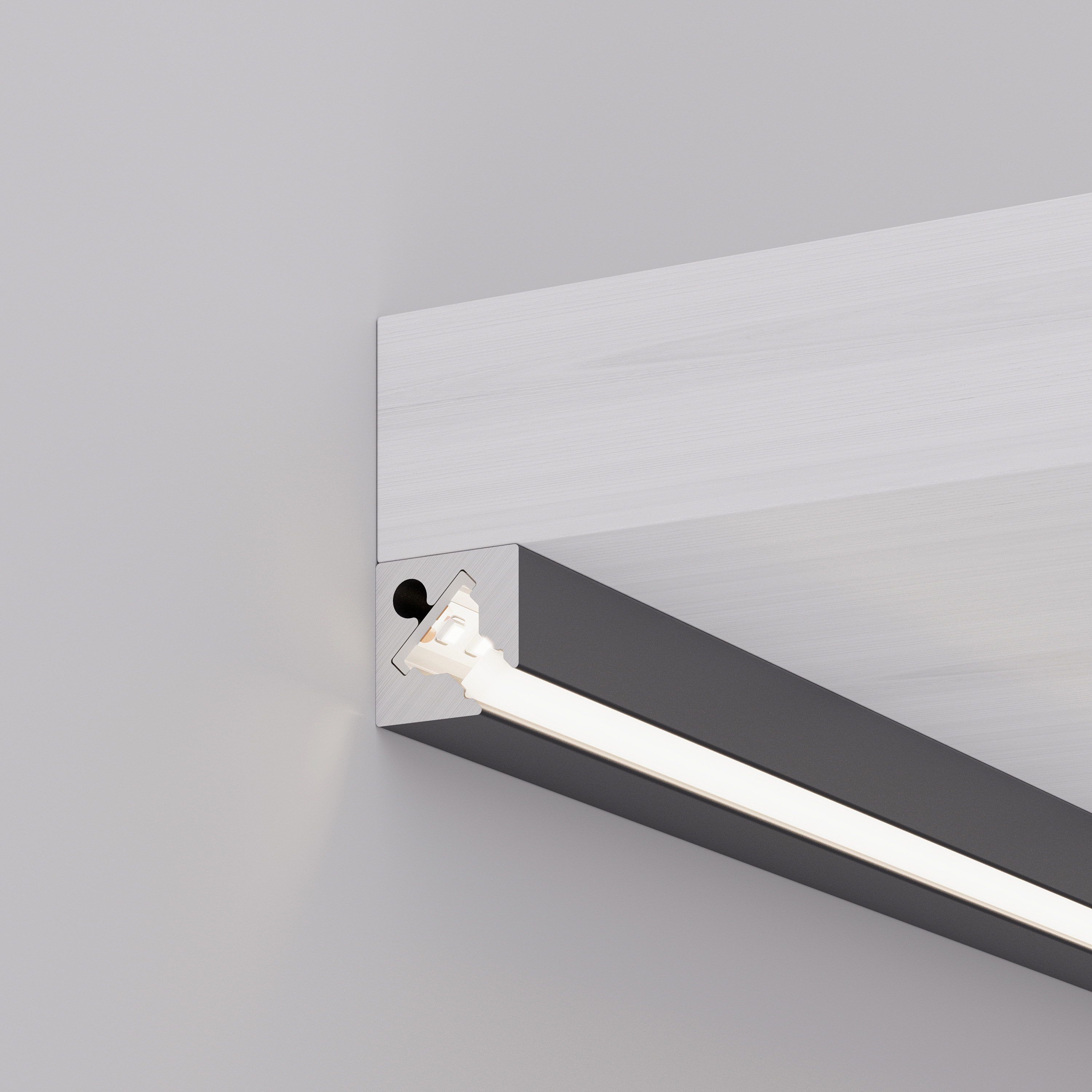 Накладной угловой профиль серо-стального цвета из алюминия в комплекте с матовым экраном из ПММА со светопропусканием 61% для подсветки мебели, пазов, ниш и других элементов интерьера. Габаритные размеры профиля составляют 2000 мм в длину, 10 мм в ширину и 10 мм в высоту. Площадка для установки светодиодных лент позволяет использовать ленту шириной до 6 мм и мощностью до 10 Вт/м. Цена указана за комплект. Отличное решение для создания современных решений в мебельной подсветке.