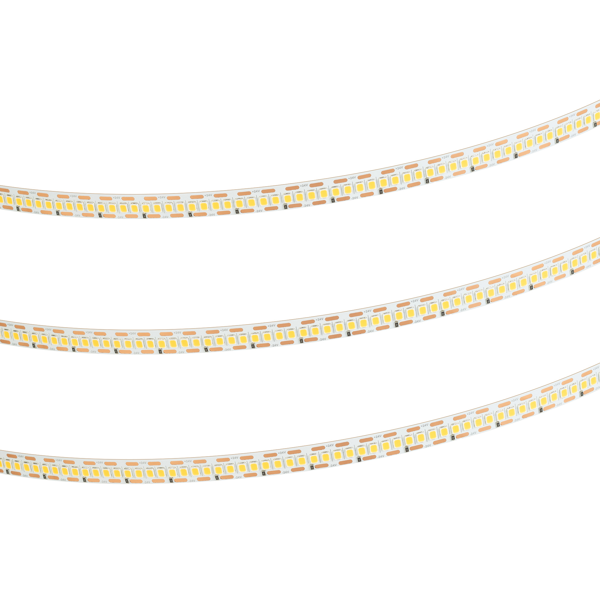 Светодиодная лента FC серии A240 с малым шагом резки. Светодиоды SMD 2835, 240 шт/м, белая плата, ширина 10 мм, скотч 3M. Цвет ТЕПЛЫЙ 2400K, индекс цветопередачи CRI>90, угол 120°. Питание 24 В, мощность 24 Вт/м (120 Вт на 5 м). Размеры 5000x10x1.3 мм. Мин. отрезок 4.16 мм, 1 светодиод. Цена за 1 м. Обязательна установка на профиль.