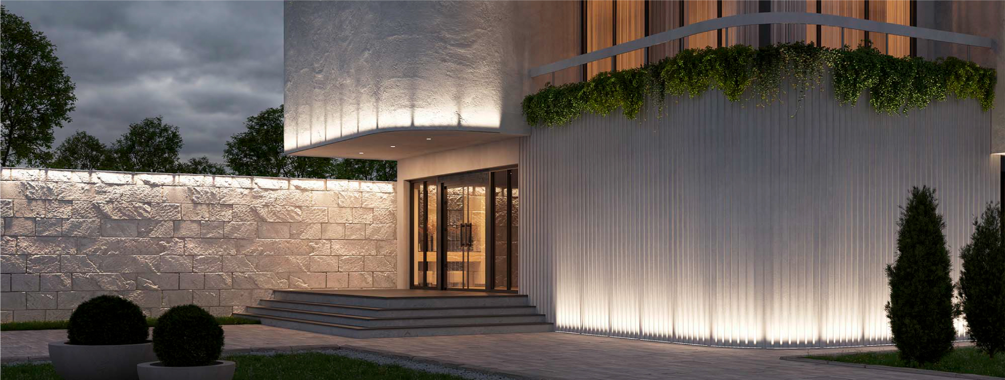 В отличие от волвошеров, которые равномерно подсвечивают фасад, грейзеры устанавливаются гораздо ближе к поверхности, что позволяет подчеркнуть ее рельеф и создать эффектные тени.