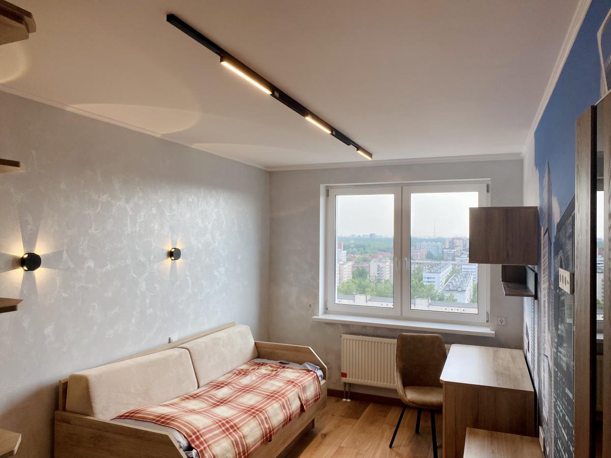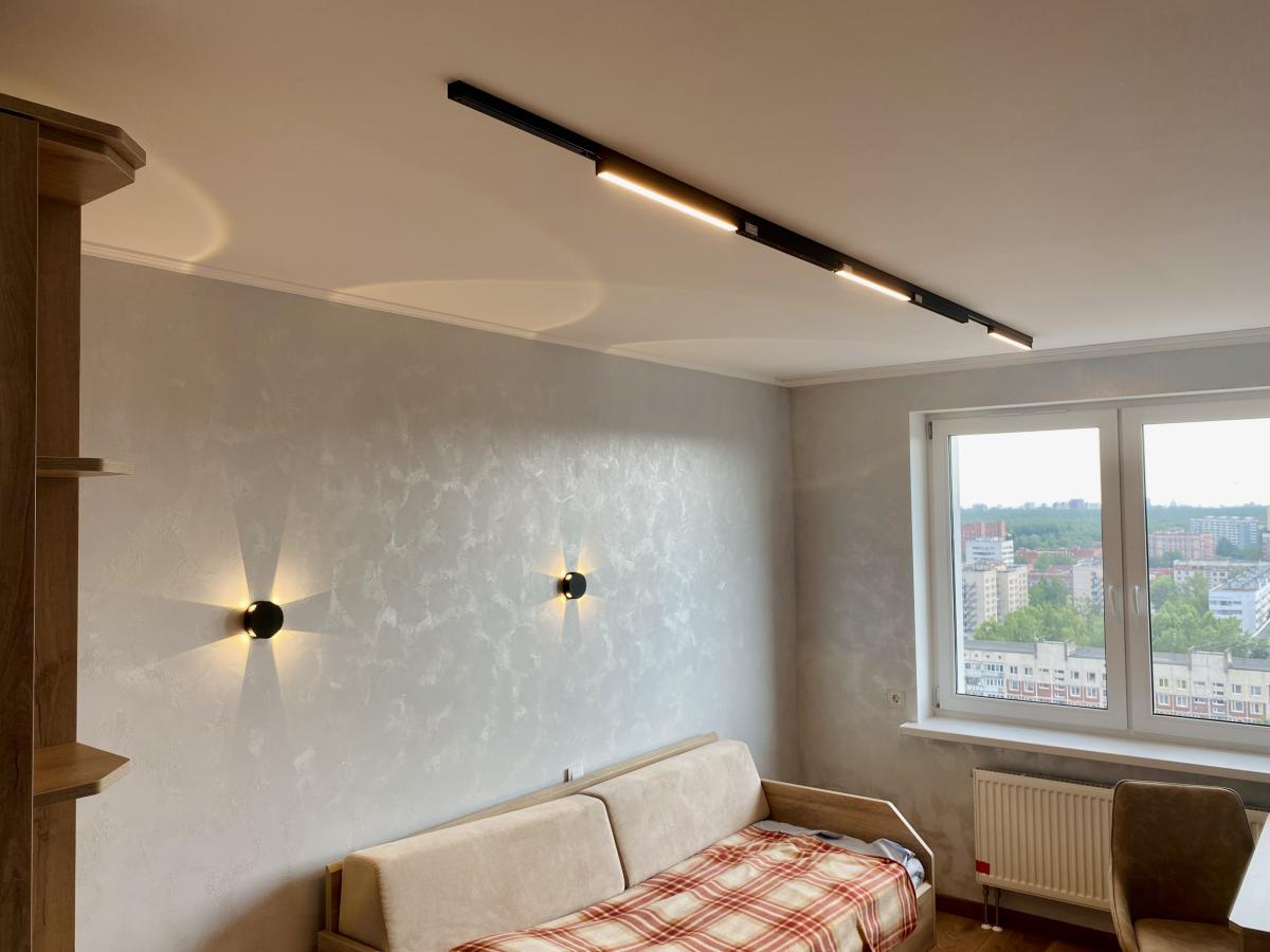 В детских также использованы магнитные треки Orient со светильниками MAG-ORIENT-FLAT для основного освещения и MAG-ORIENT-LASER для акцентного только в черном корпусе. Мы выбираем именно эти светильники для подобных проектов, потому что уверены в их качестве и долгом сроке их службы, а также это самые современные и стильные варианты светильников на рынке.