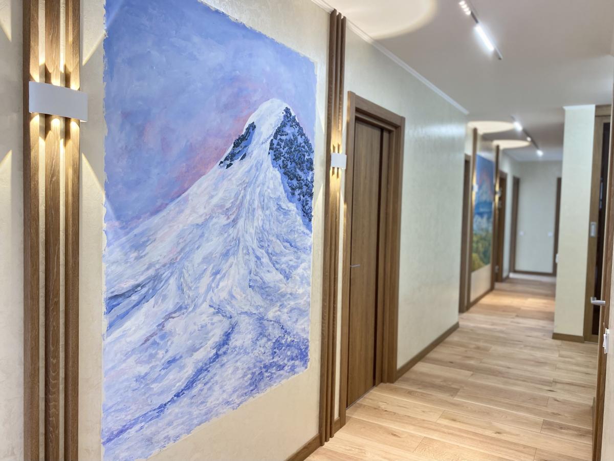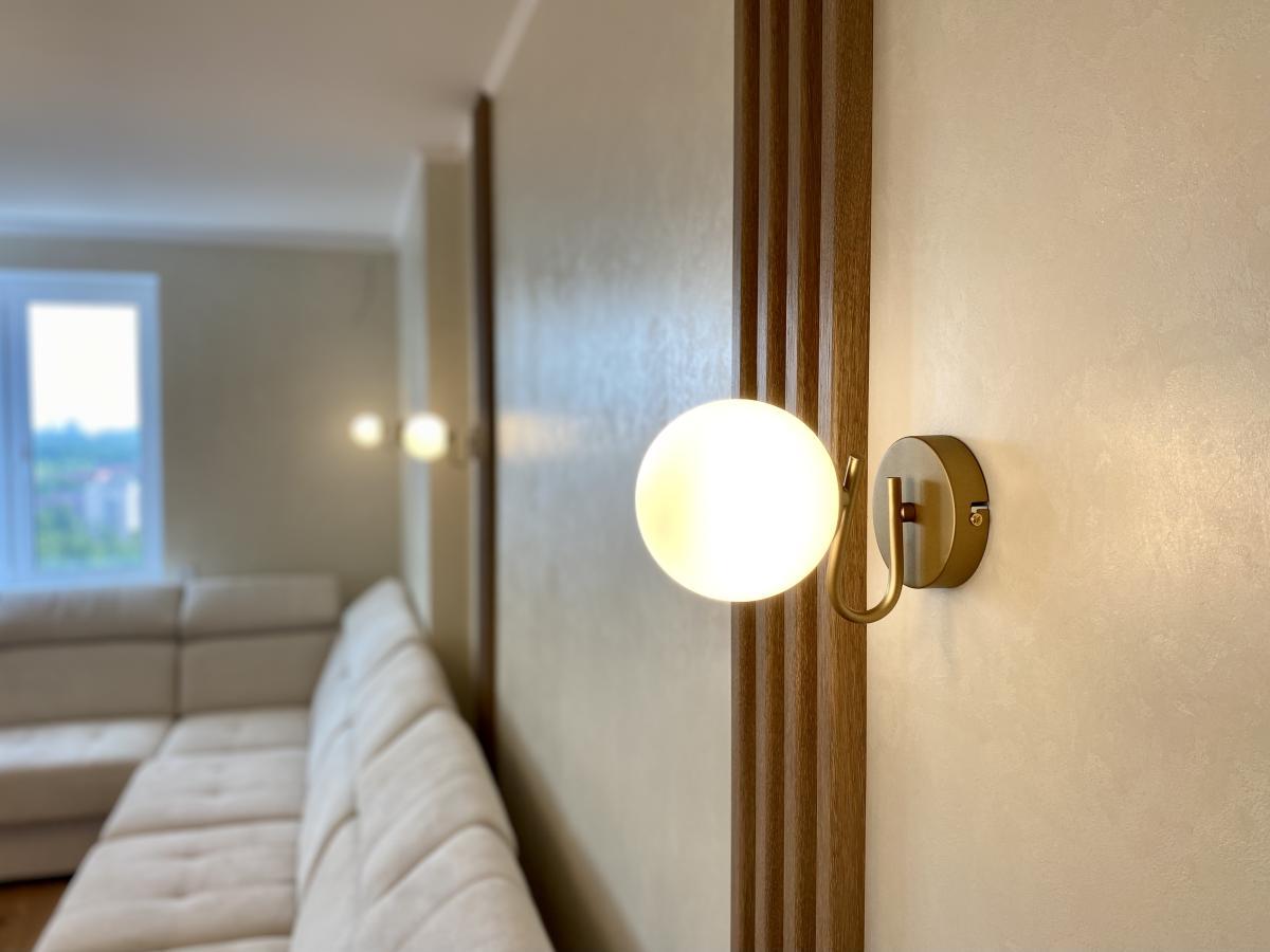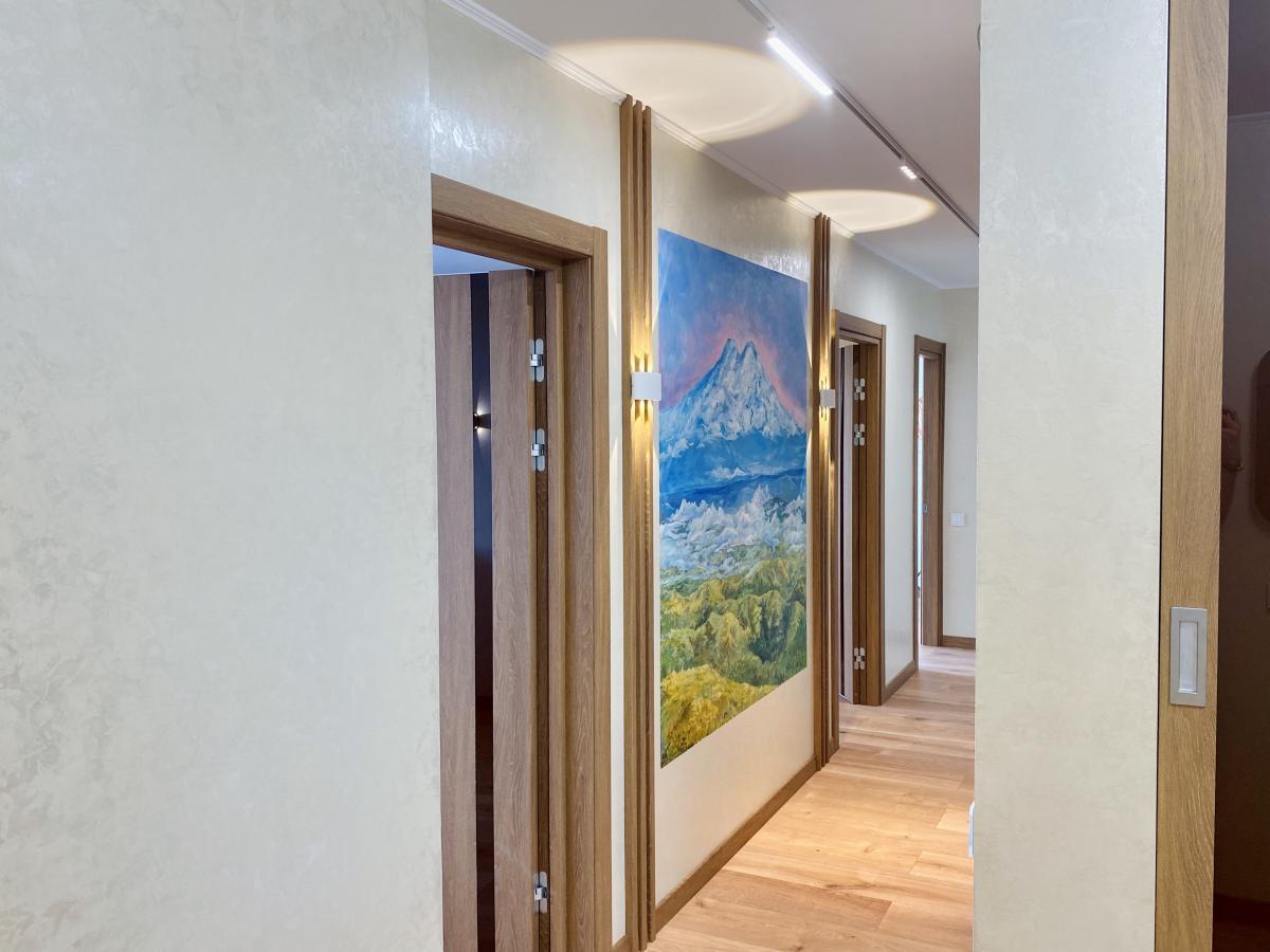 Задачей дизайнера было соединить современный стиль и природу, отразить любовь к альпинизму и горам хозяев квартиры! А наша – подобрать комфортное и качественное освещение, удовлетворяющее запросам клиента и проекту дизайнера.