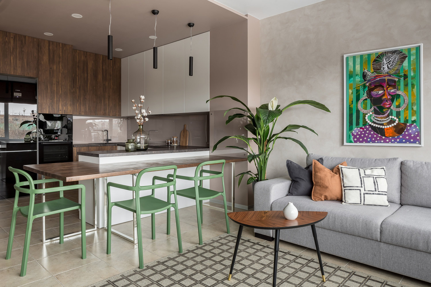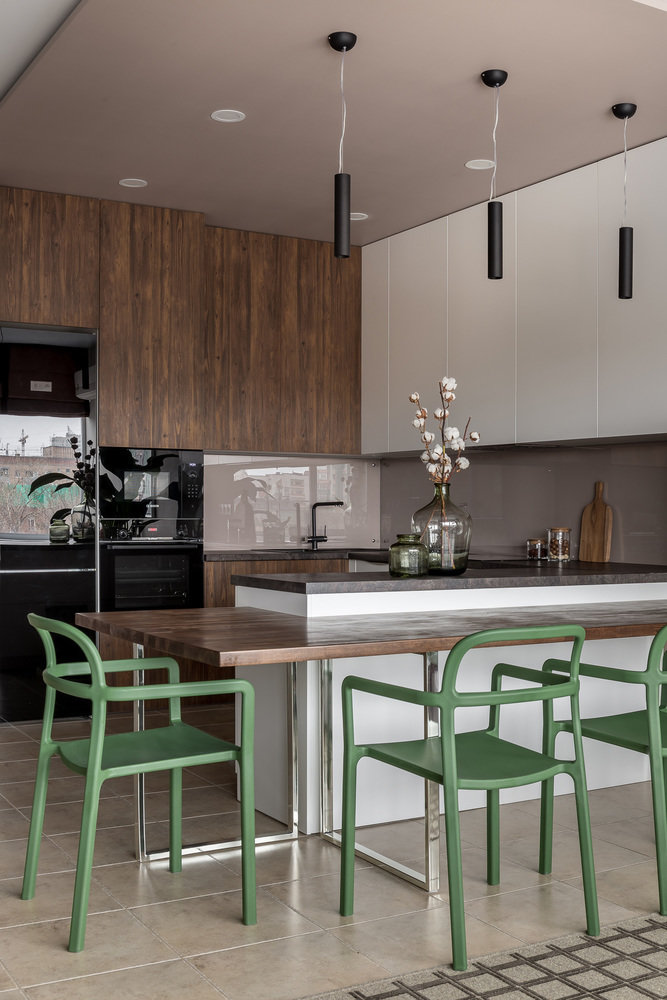 Минимум лишних деталей и стильный дизайн — такой девиз выбрали дизайнеры проекта. Освещение в коридоре и кухне-гостиной реализовано с помощью встраиваемых светодиодных панелей, которые обеспечивают хороший основной свет. Чтобы организовать локальную подсветку рабочей зоны кухни, использовали анодированный профиль со светодиодной лентой.