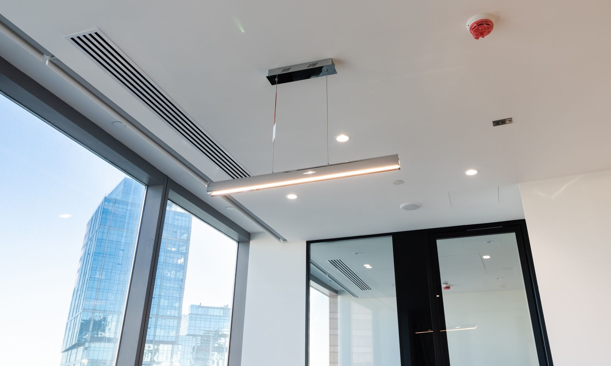 Современный офис с панорамным видом на Москву превратился в уникальное световое пространство. Основным элементом оформления стали подвесные линейные светильники на тросах, при создании которых использовали профиль круглого сечения с матовым экраном. Подвесные светильники не только создают комфортное основное освещение, но и являются дизайнерскими объектами. Для разных зон офиса выбраны разные оттенки белого: теплый белый располагает к комфортному общению, а дневной настраивает на активную работу в течение всего дня. В коридоре использовали встроенные линии света с лентами на черной плате — они очень эффектно смотрятся в помещениях с темными стенами и не выделяются на их фоне. Стильные и оригинальные светильники в виде колец собраны из профилей и широкой светодиодной ленты. В деревянные перегородки заложили линии света, подчеркнув благородную текстуру натурального дерева.