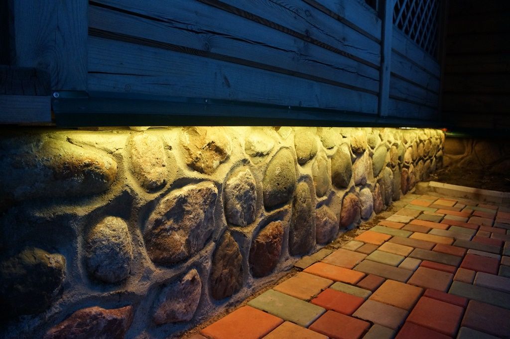 Простая подсветка фасада многоцветной светодиодной лентой RGB от компании arlight® в разы улучшила вид простой загородной беседки.