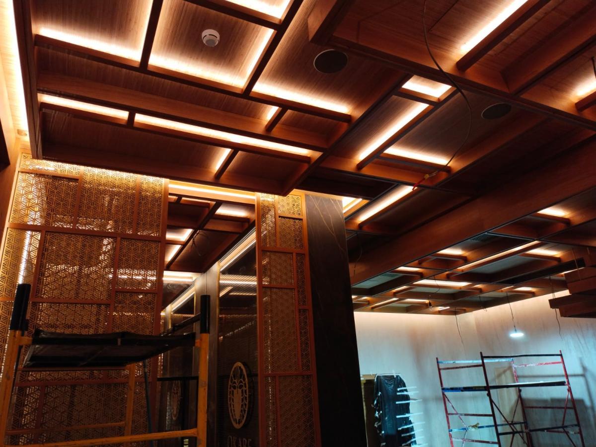 Мы получили заказ из самого сердца Сибири на освещение для ресторана. Задача стояла подобрать качественную подсветку для потолка в зале для гостей, входной группы и туалетных комнат.