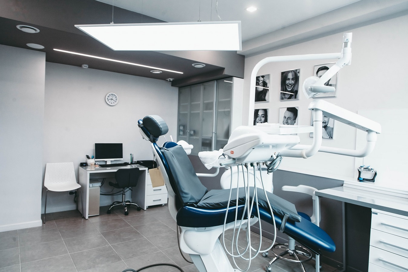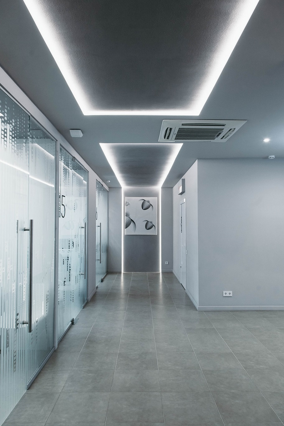 Самое главное место в клинике — стоматологический кабинет. Основное освещение выполнено с помощью квадратных светильников DL. За счет матового рассеивателя свет не слепит пациентов, даже если стоматолог откинул кресло в горизонтальное положение. Еще один источник света, который делает работу врача более комфортной, — подвесная светодиодная панель IM. Она также обладает матовым экраном, который не доставляет пациентам дискомфорт, и при этом образует мягкое равномерное свечение в самой важной зоне кабинета.