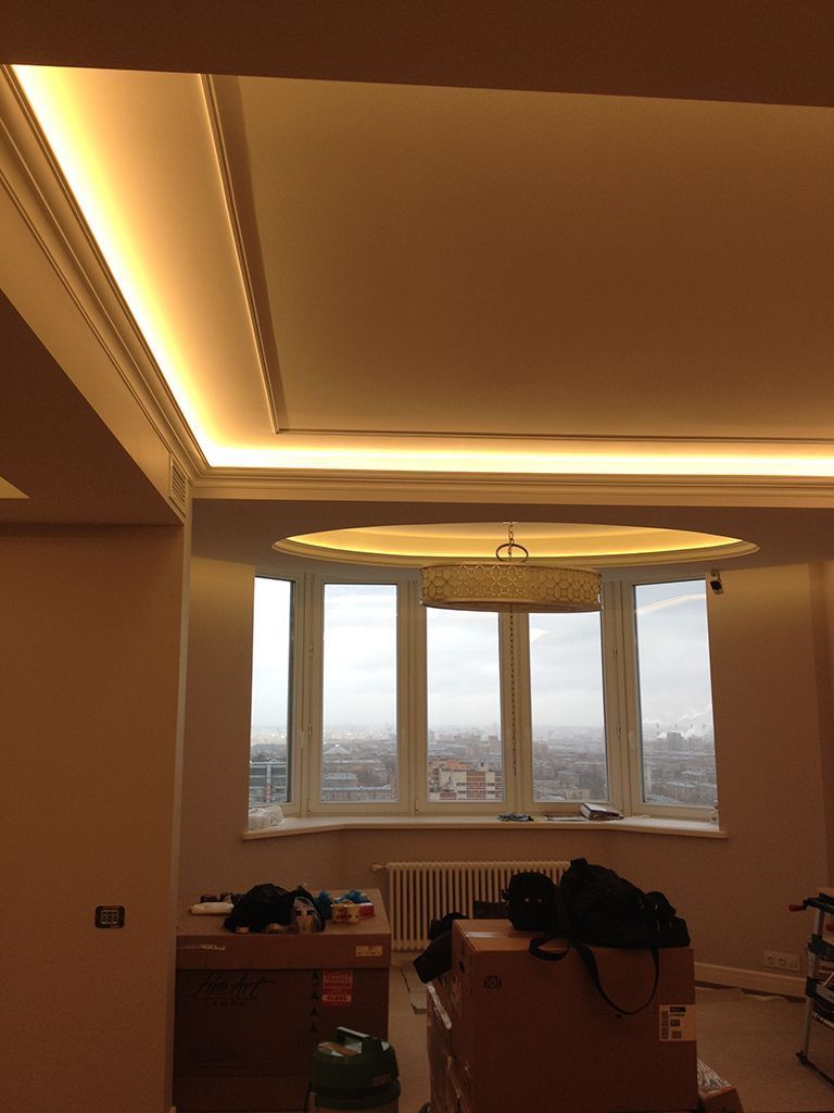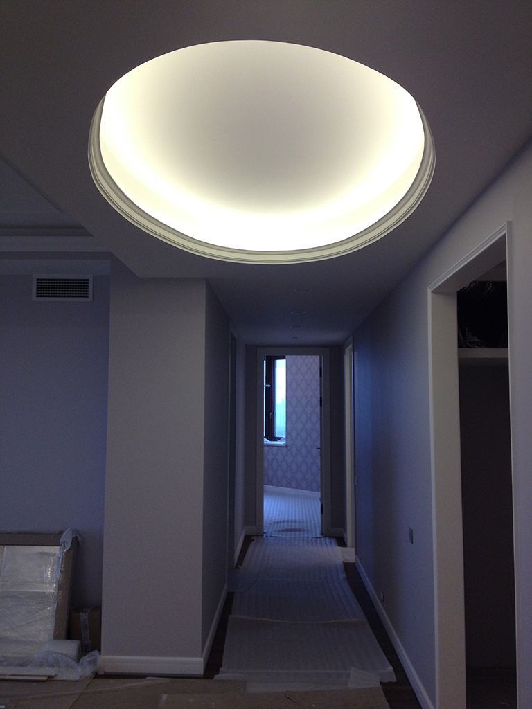 Для большей части подсветки светодиодная лента была установлена в алюминиевые профили arlight® с экранами. Профиль служит для ленты теплоотводом, обеспечивая правильный температурный режим, а значит, продлевая срок её службы. Матовые экраны для профилей рассеивают свечение ленты, делая его еще более равномерным.